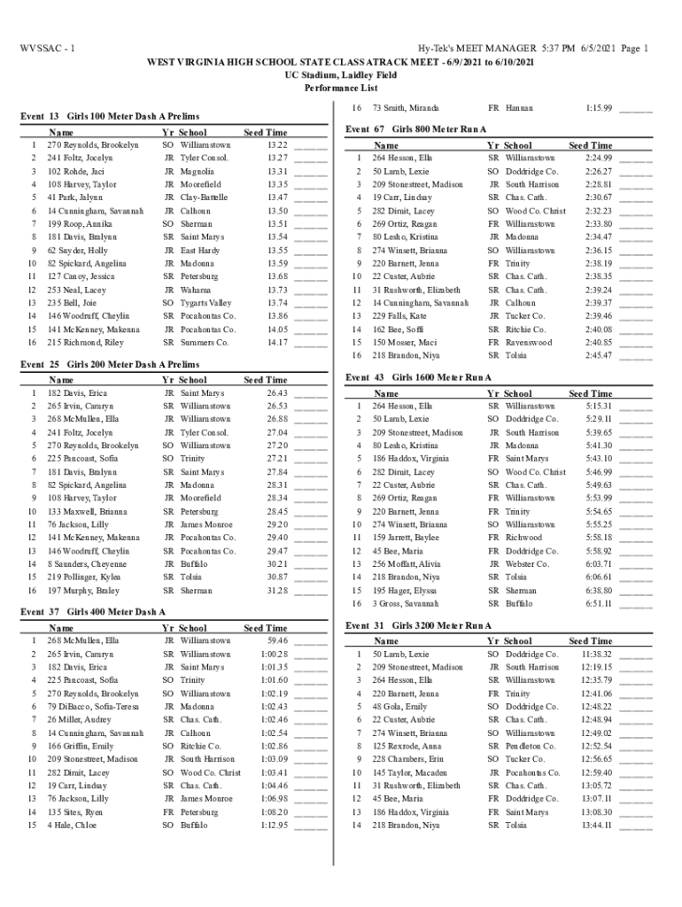 Get the free WVSSAC - 1 Hy-Tek's MEET MANAGER 5:37 PM 6/5/2021 Page 1 ...