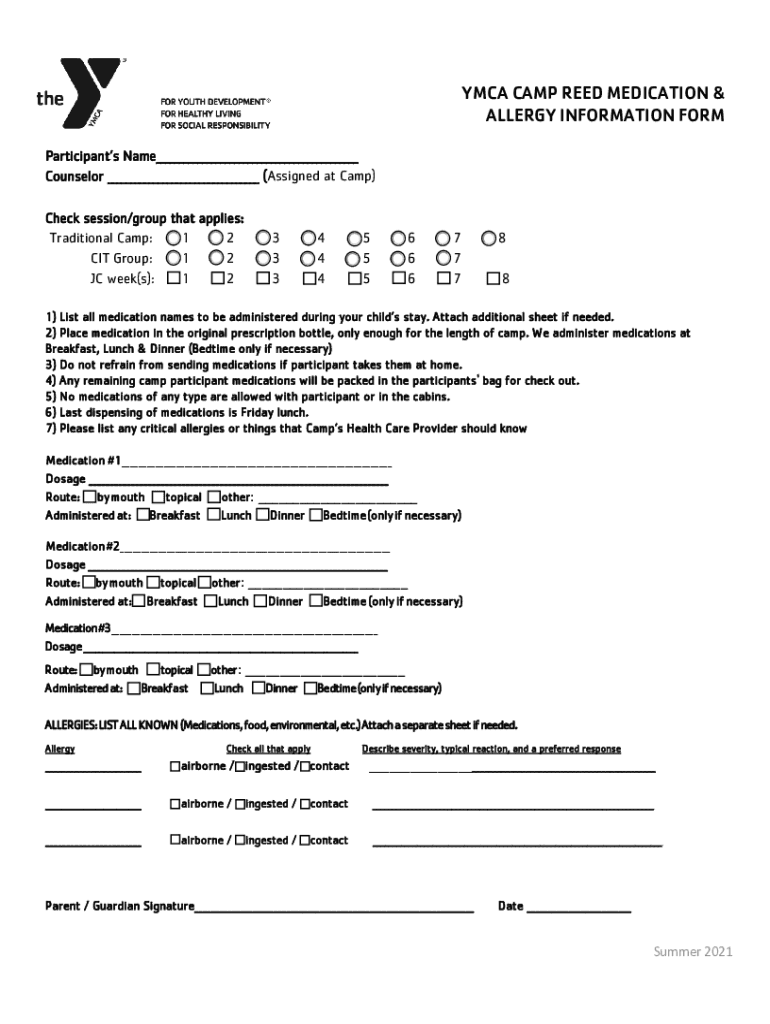 Get the free YMCA CAMP REED MEDICATION & ALLERGY INFORMATION FORM
