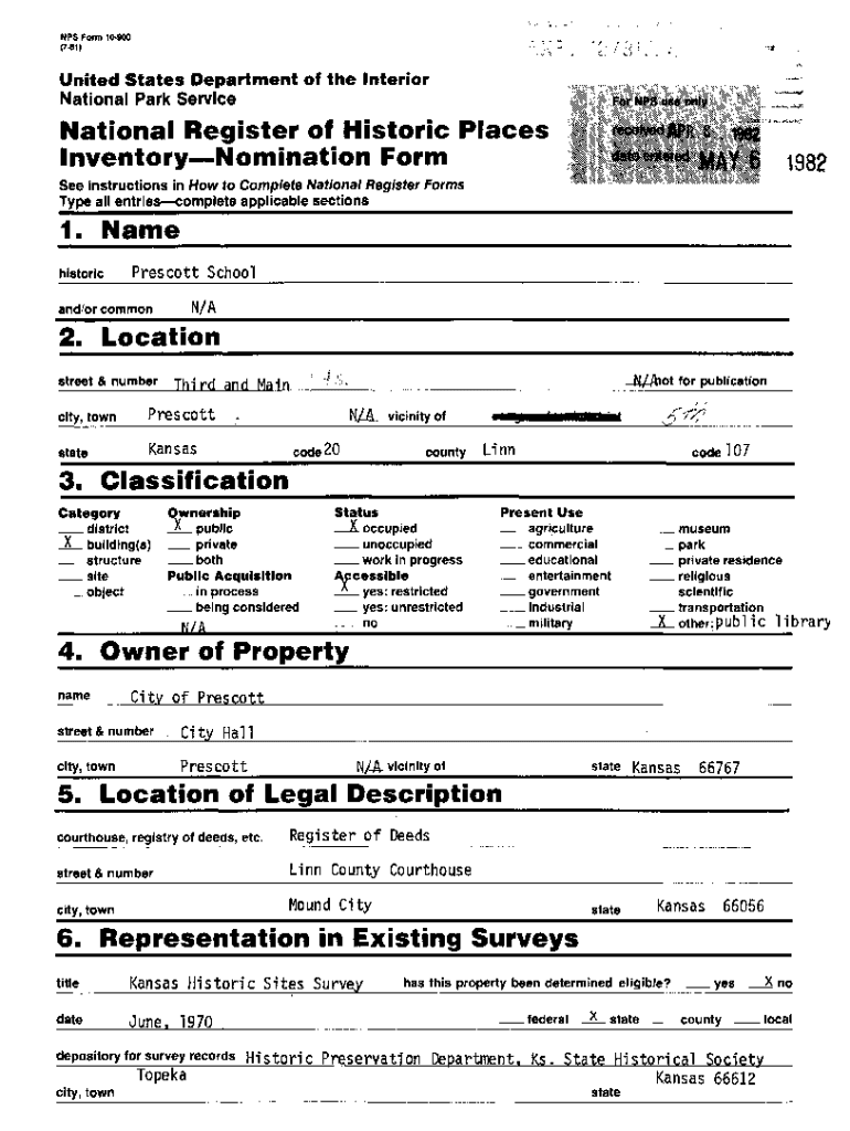 NFS Form 10900 (781)United States Department of the International Park ServiceNational Register of Historic Places Inventory Nomination Form1982See instructions in How to Complete National Register