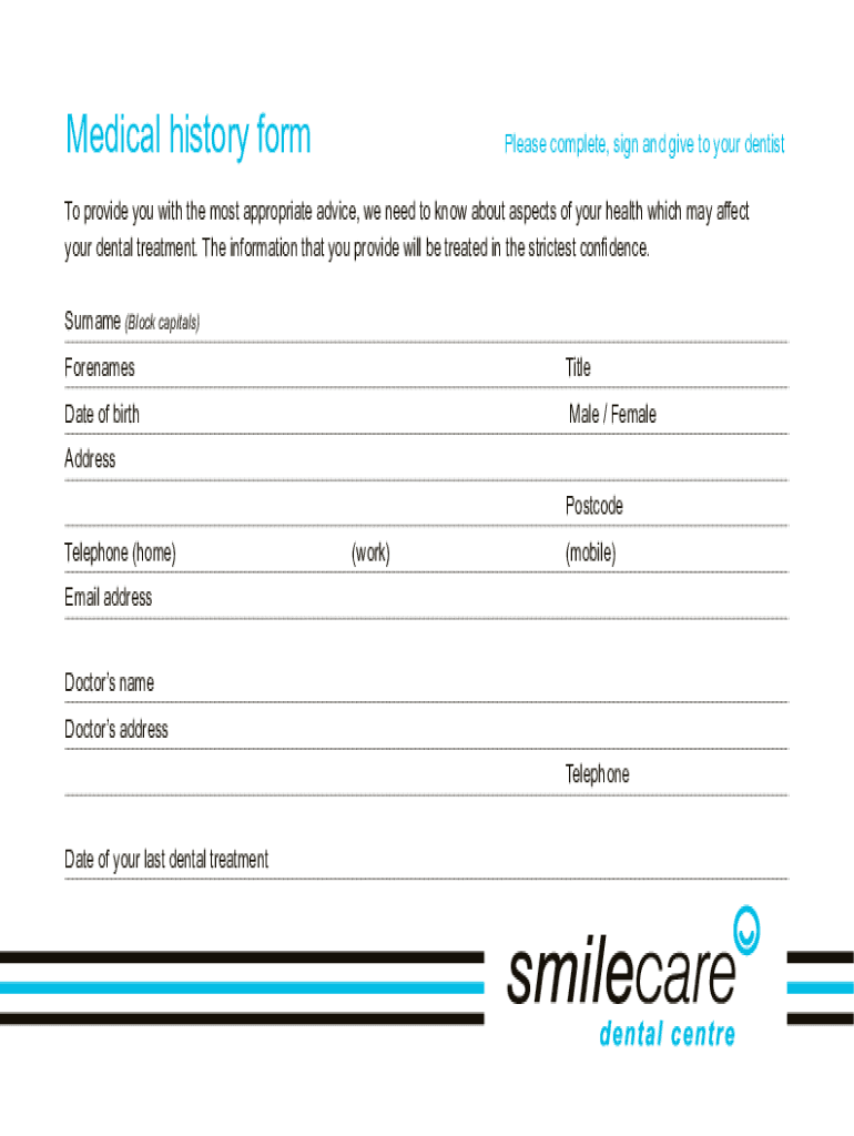 Medical history formulas complete, sign and give to your dentist provide you with the most appropriate advice, we need to know about aspects of your health which may affect your dental treatment.