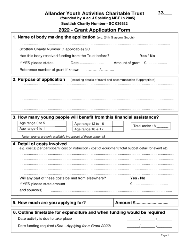 Allander Youth Activities Charitable Trust22/ (founded by Alec J Scalding BE in 2005) Scottish Charity Number SC 0368822022 Grant Application Form 1. Name of body making the application (e.g. 24th