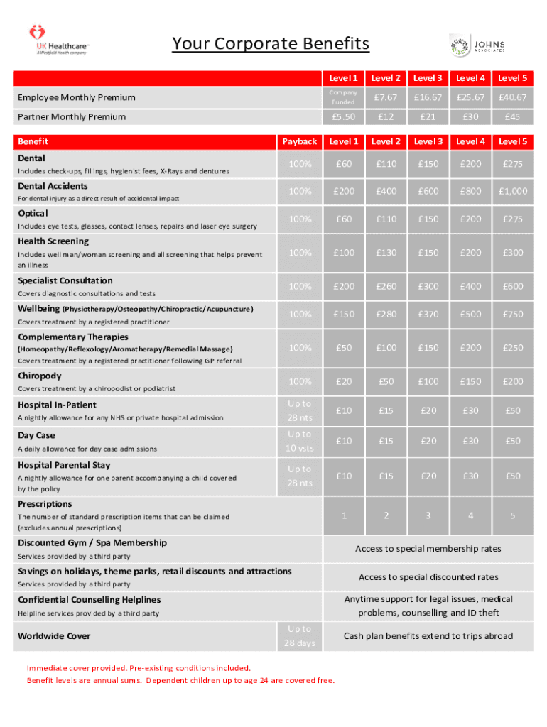Your Corporate Benefits Level 1Level 2Level 3Level 4Level 5Company Funded7.6716.6725.6740.675.5012213045PaybackLevel 1Level 2Level 3Level 4Level 5100%60110150200275100%2004006008001,000100%60110150200275100%100130150200300100%200260300400600100%150280370500750100%50100150200250100%2050100150200Up