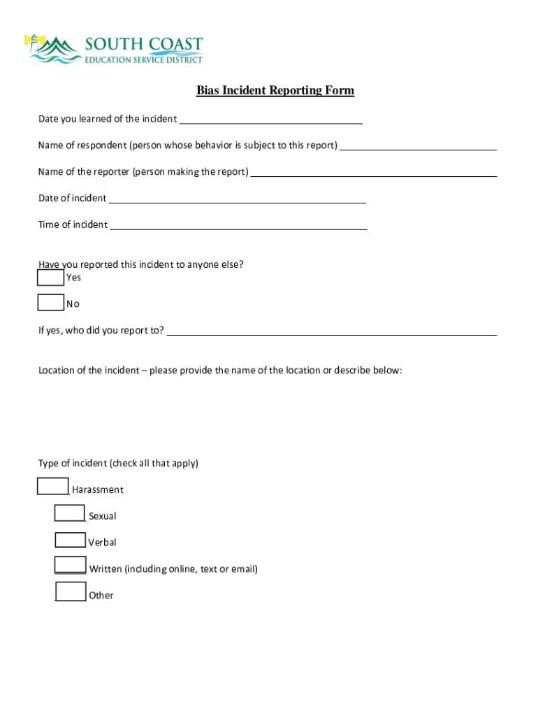 Get the free Bias Incident Reporting Form - scesd.k12.or.us