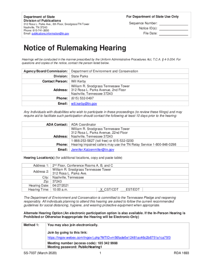 For Department of State Use OnlyDepartment of State Division of PublicationsSequence Number: Notice ID(s):312 Rosa L. Parks Ave., 8th Floor, Snodgrass/TN Tower Nashville, TN 37243 Phone: 6157412650