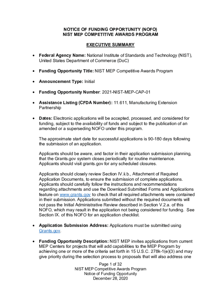 Get the free NOTICE OF FUNDING OPPORTUNITY (NOFO) NIST MEP COMPETITIVE ...