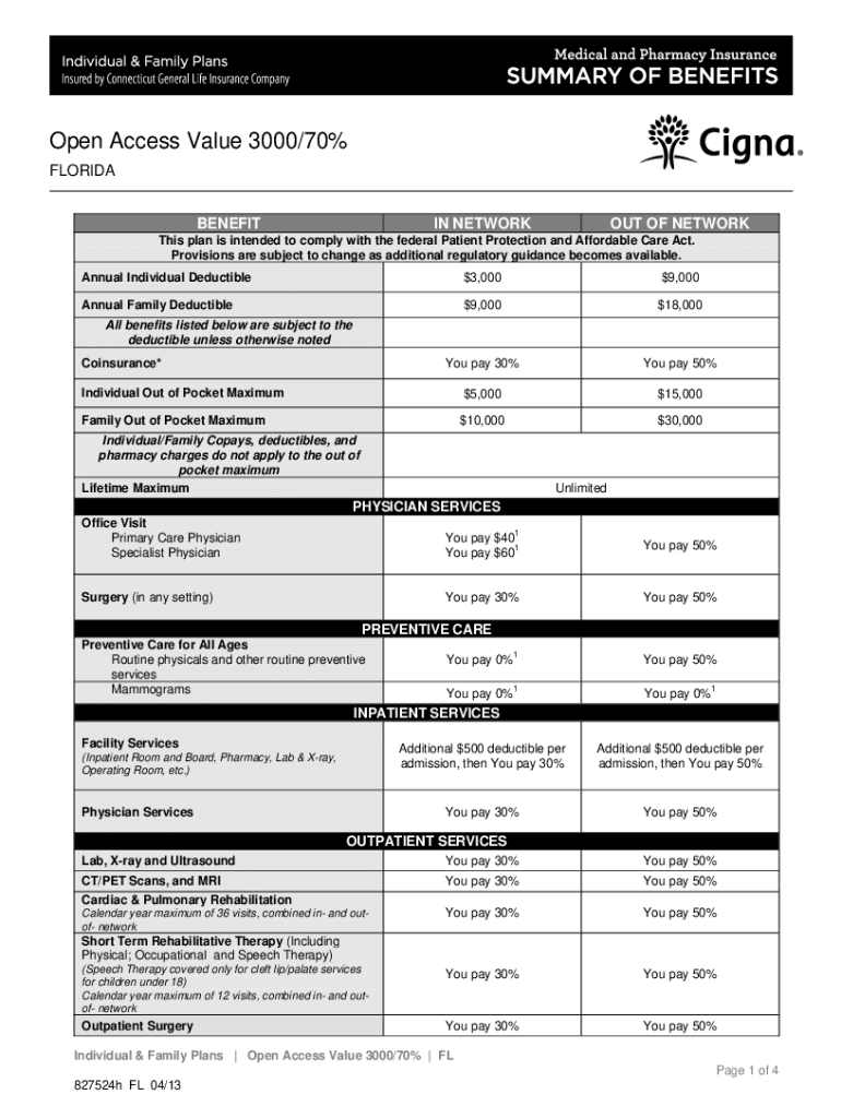 Get the free cigna.healthplan.comuser-docs005729SummaryofSummary of Benefit Open Access Plan
