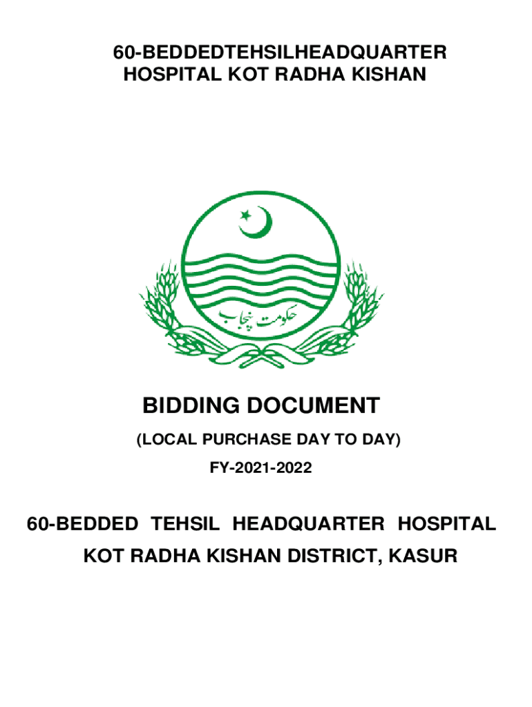 60BEDDEDTEHSILHEADQUARTER HOSPITAL NOT RAD HA KISHANBIDDING DOCUMENT (LOCAL PURCHASE DAY TO DAY) FY2021202260BEDDED TENSILE Headquarters HOSPITAL NOT RAD HA KRISHAN DISTRICT, KASURTHQ HOSPITAL NOT