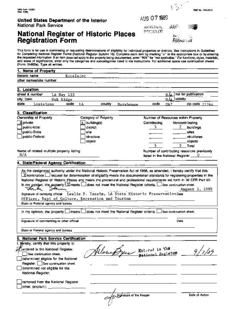 Get the free National Register of Historic Places R"G3TER Registration Form