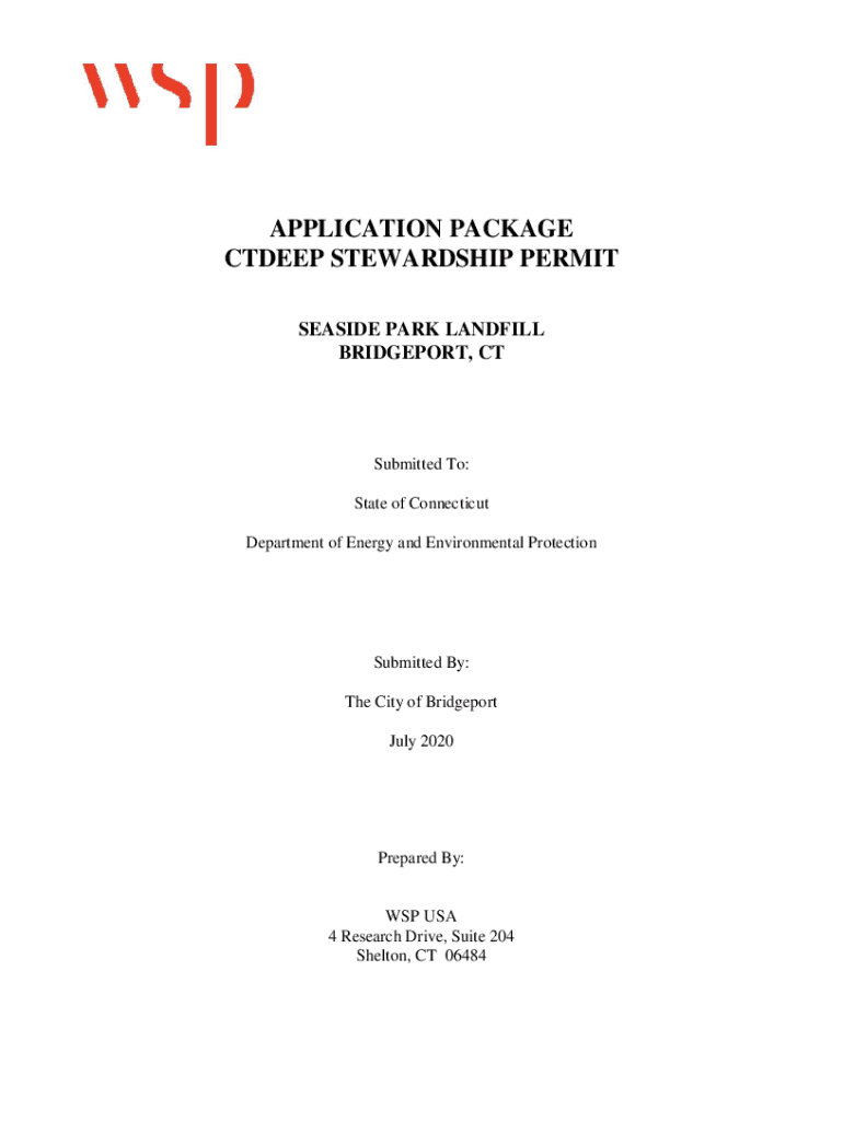 APPLICATION PACKAGE DEEP STEWARDSHIP PERMIT SEASIDE PARK LANDFILL BRIDGEPORT, Submitted To: State of Connecticut Department of Energy and Environmental ProtectionSubmitted By: The City of Bridgeport