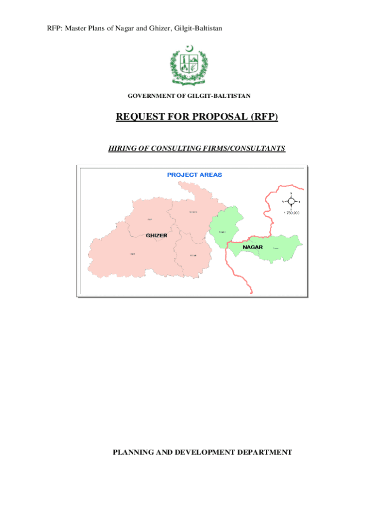 RFP: Master Plans of Nagar and Glider, GilgitBaltistanGOVERNMENT OF GILGITBALTISTANREQUEST FOR PROPOSAL (RFP) HIRING OF CONSULTING FIRMS/CONSULTANTSPLANNING AND DEVELOPMENT DEPARTMENT RFP: Master