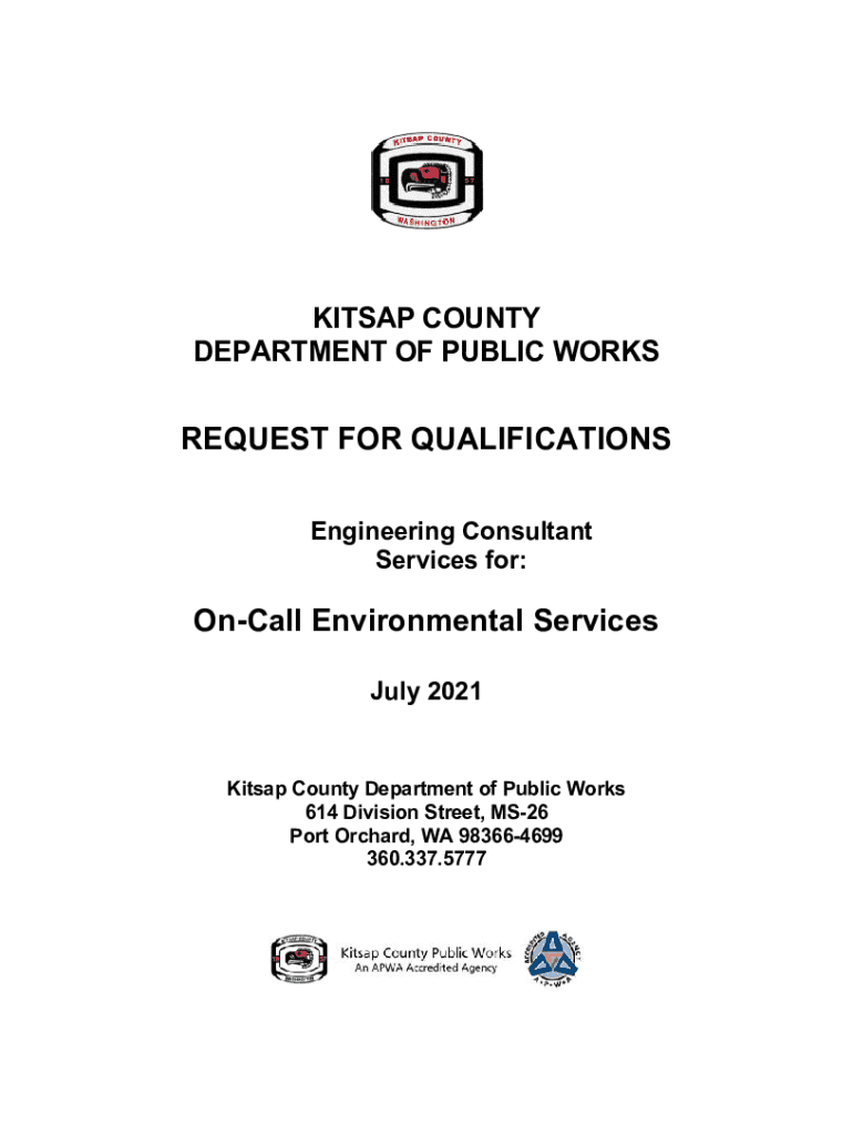 KITSAP COUNTY DEPARTMENT OF PUBLIC WORKSREQUEST FOR QUALIFICATIONS Engineering Consultant Services for:Call Environmental Services July 2021Kitsap County Department of Public Works 614 Division Street,