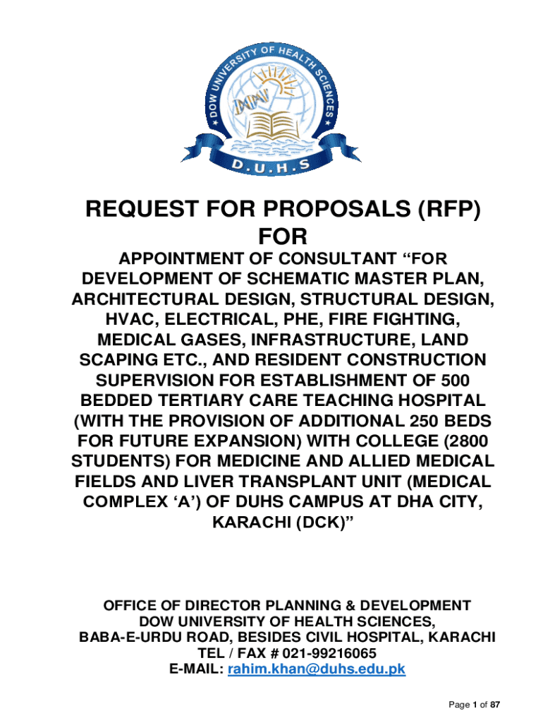 REQUEST FOR PROPOSALS (RFP) FOR APPOINTMENT OF CONSULTANT FOR DEVELOPMENT OF SCHEMATIC MASTER PLAN, ARCHITECTURAL DESIGN, STRUCTURAL DESIGN, HVAC, ELECTRICAL, PHE, FIRE FIGHTING, MEDICAL GASES, INFRASTRUCTURE,