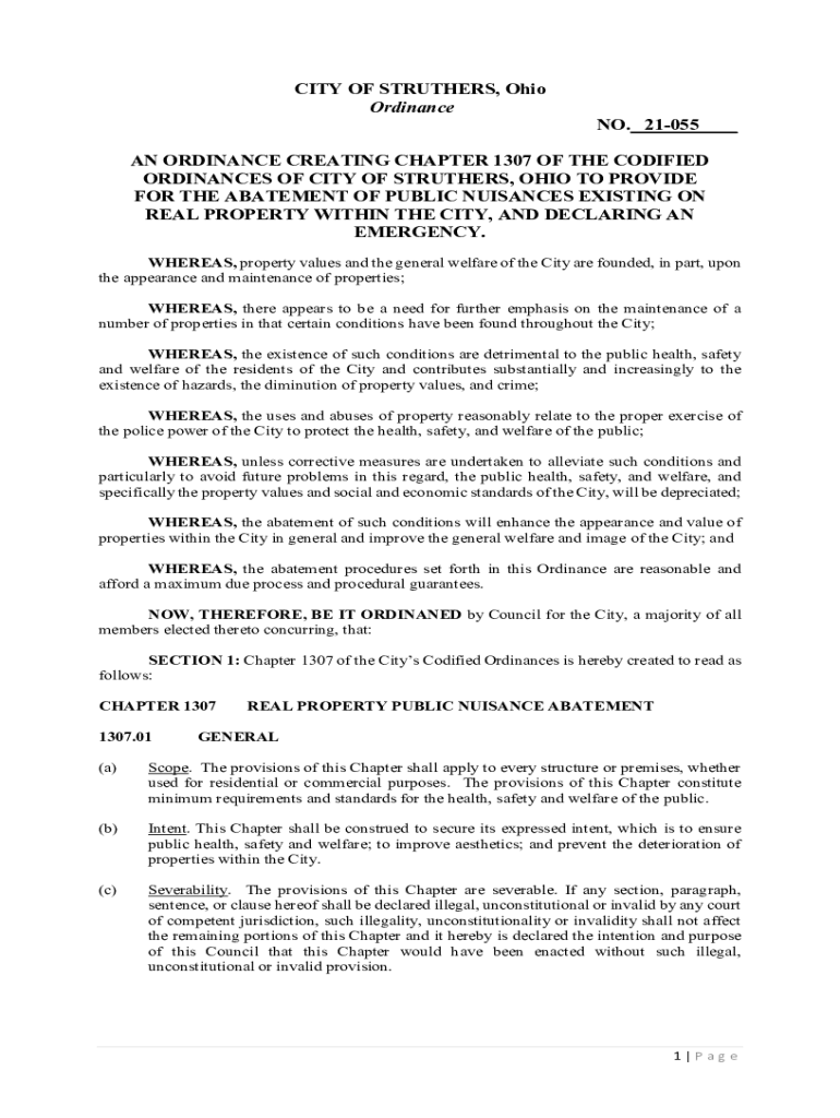 Get the free CITY OF STRUTHERS, Ohio Ordinance NO. 21-055 AN ORDINANCE ...