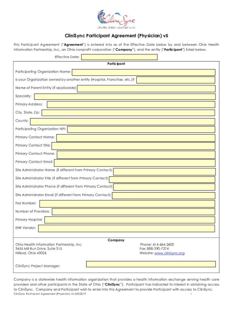 Get the free CliniSync Participant Agreement (Physician) v5