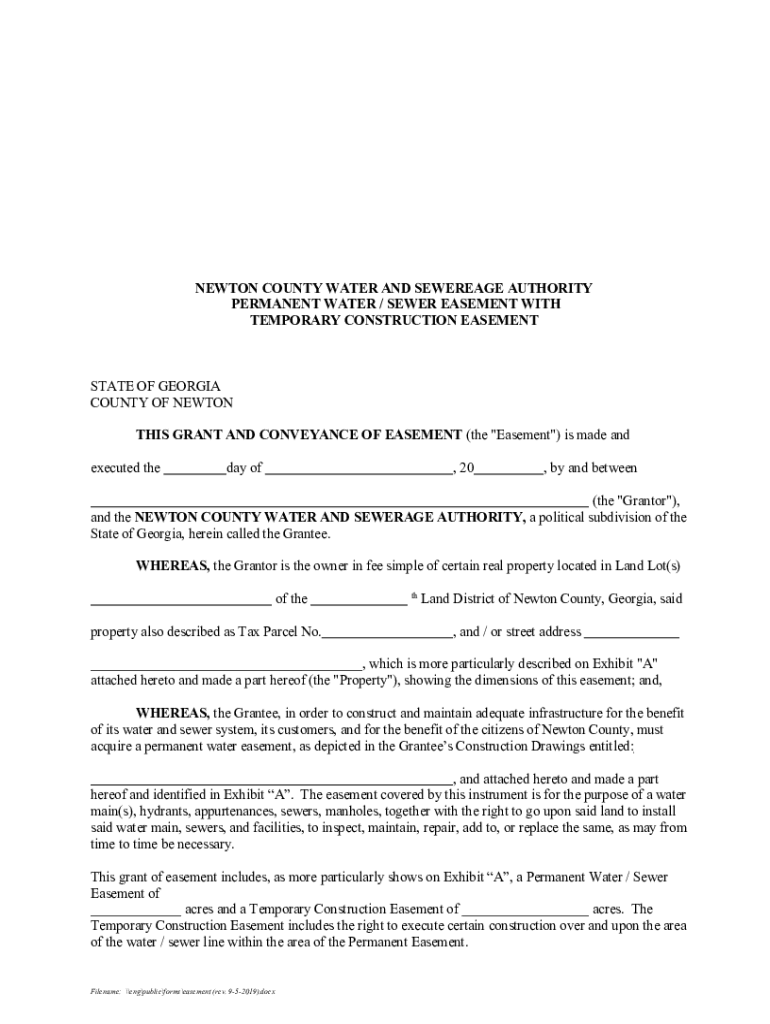 Get the free ncwsa.ussewer-easement-formSewer-Easement-FormNewton County Water Authority, Newton ...