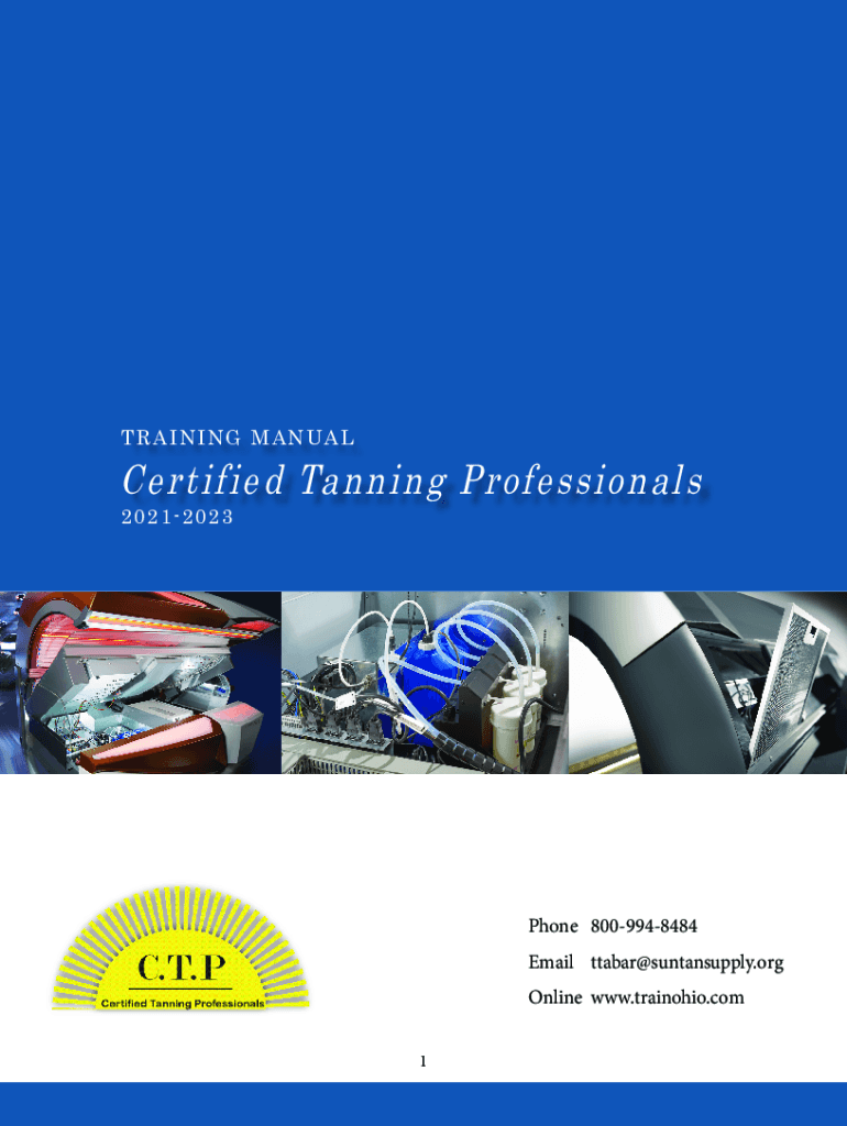 TRAINING MANUALCertified Tanning Professionals 20212023Phone 8009948484 Email ttabar@suntansupply.org Online www.trainohio.com 1IntroductionAbout Suntan Supply OUR MISSION, Suntan Supply will continue