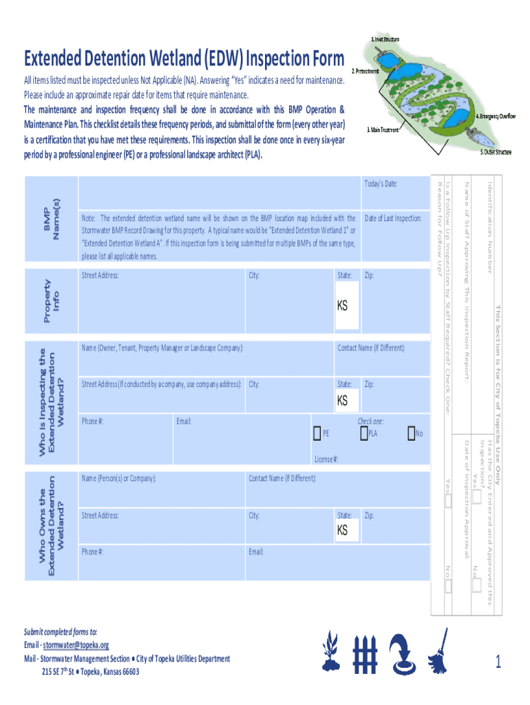 Extended Detention Wetland (EDW) Inspection Formal items listed must be inspected unless Not Applicable (NA). Answering Yes indicates a need for maintenance. Please include an approximate repair date
