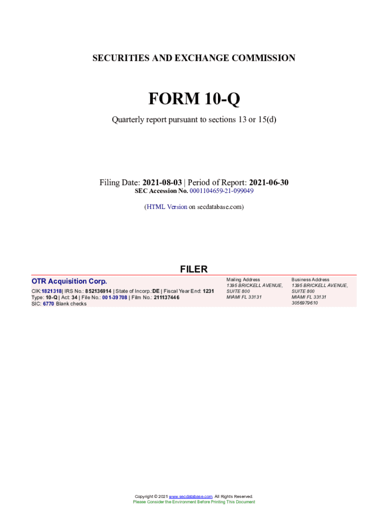 SECURITIES AND EXCHANGE COMMISSIONER 10Q Quarterly report pursuant to sections 13 or 15(d)Filing Date: 20210803 Period of Report: 20210630 SEC Accession No. 000110465921099049 (HTML Version on secdatabase.com)FILER