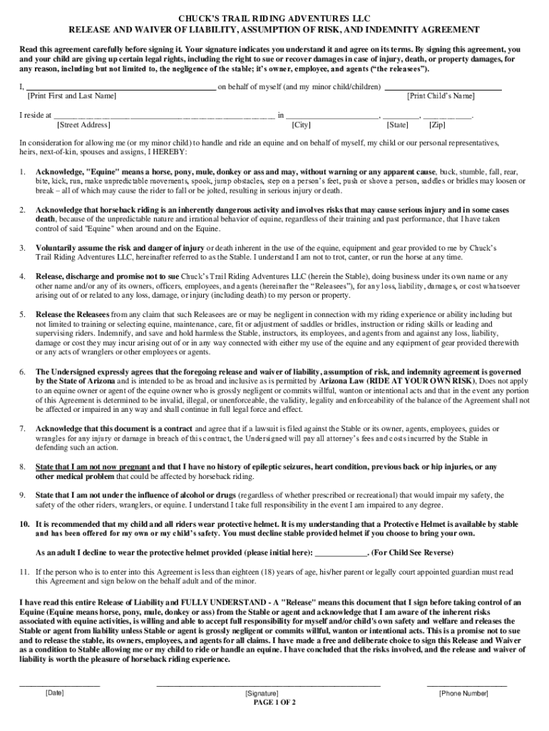 Get the free koliequestrian.comwp-contentuploadsCHUCKS TRAIL RIDING ADVENTURES LLC RELEASE AND WA...