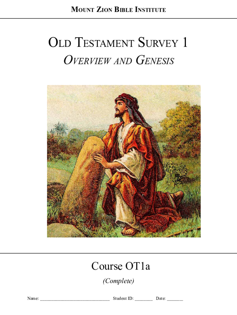 Mount Zion Bible Instituted Testament Survey 1 Overview and GenesisCourse OT1a (Complete) Name: Student ID: Date: Instructions for this course the reading material for this course is included in this