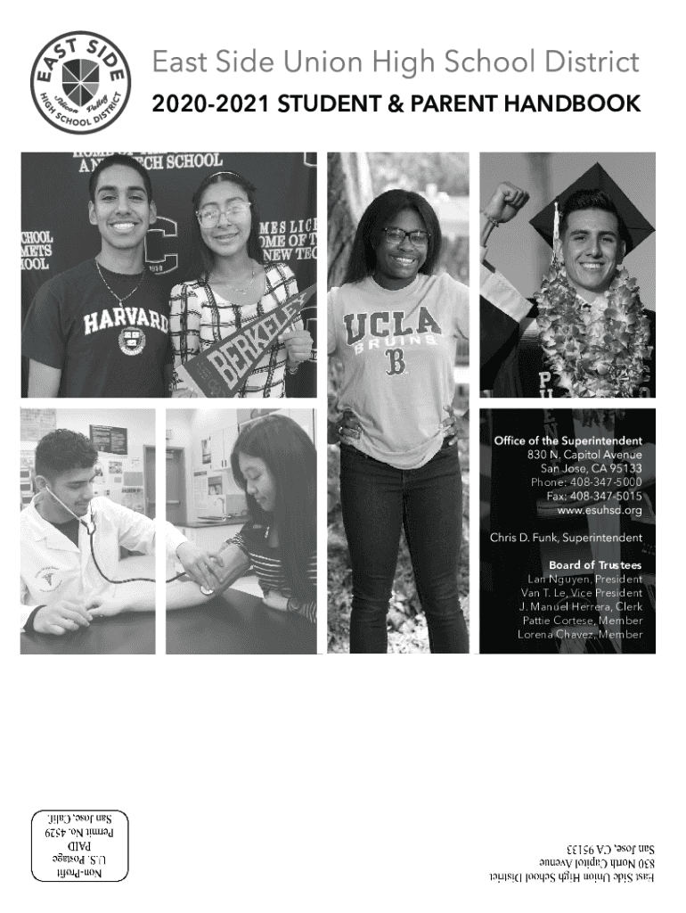 20202021 STUDENT & PARENT HANDBOOKPhone: 4083475000Board of Trustees LAN Nguyen, President Van T. Le, Vice President J. Manuel Herrera, Clerk Pattie Cortes, Member Lorena Chavez, MemberPARENT/STUDENT