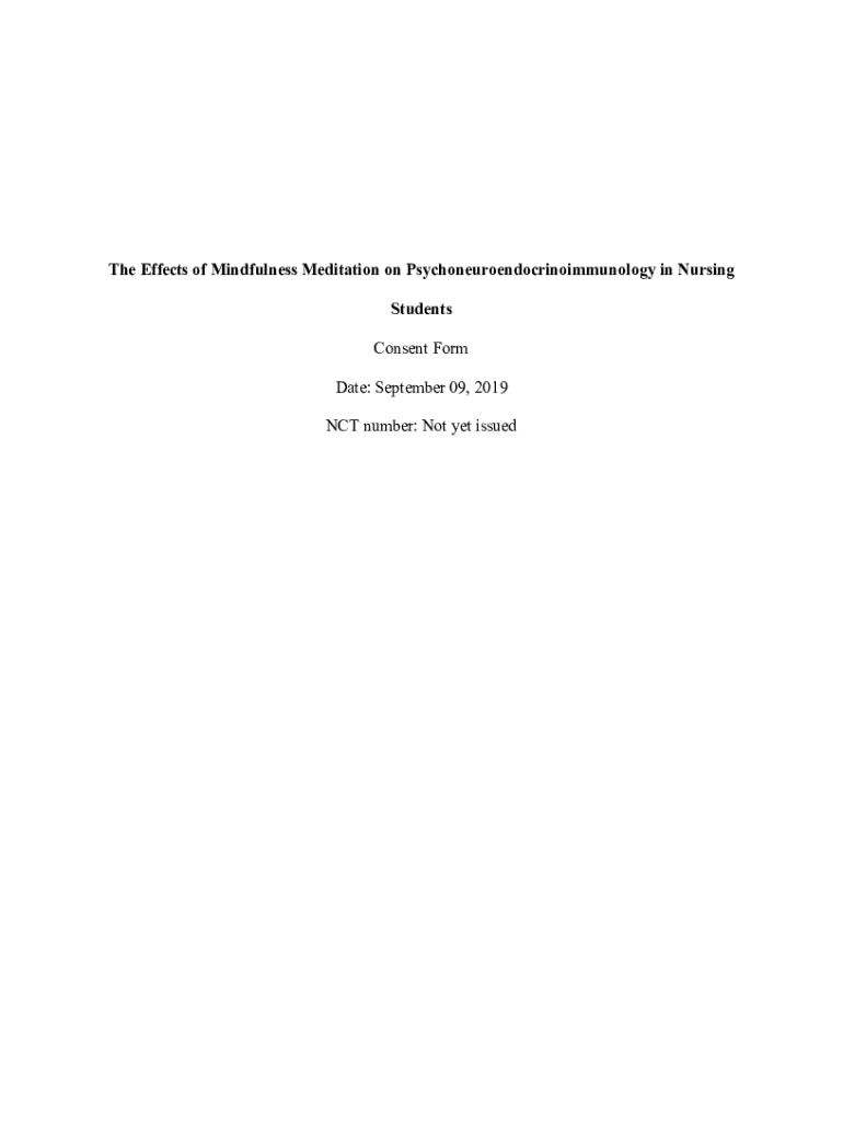 The Effects of Mindfulness Meditation on Psychoneuroendocrinoimmunology in Nursing Students Consent Form Date: September 09, 2019, NCT number: Not yet issuedConsent Form Study Title: Effects of mind