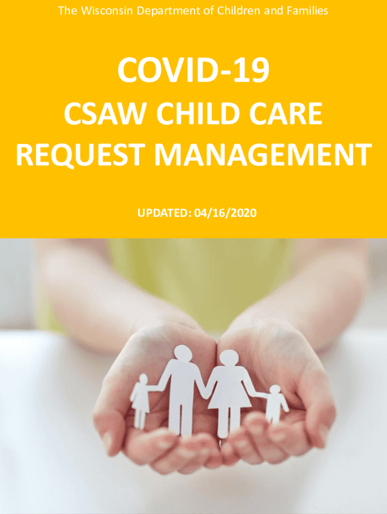 The Wisconsin Department of Children and FamiliesCOVID19 SAW CHILD CARE REQUEST MANAGEMENT UPDATED: 04/16/2020Information about workflow Essential workers request child care through the Child Care