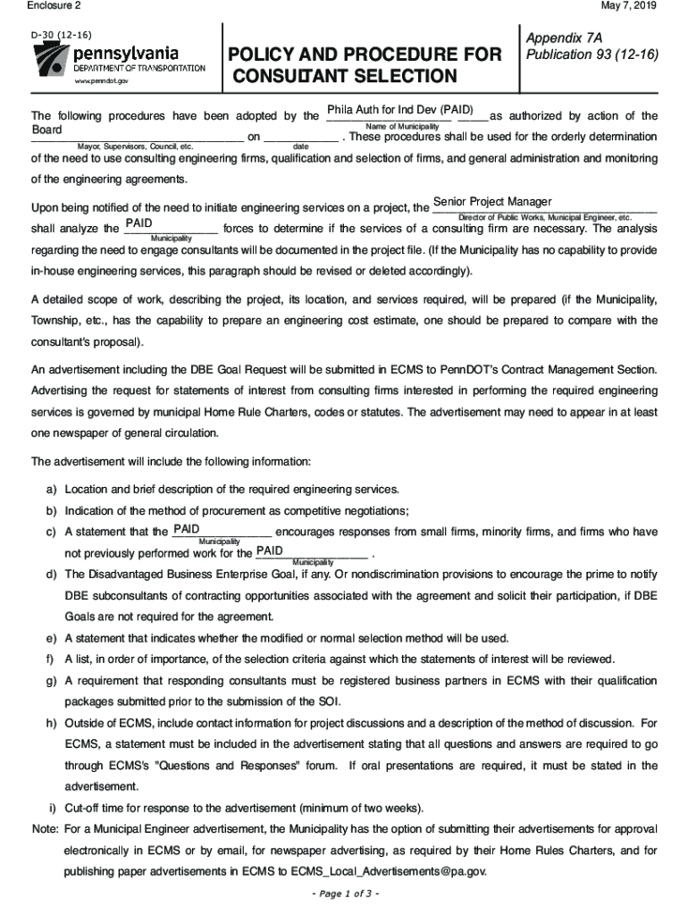 MINUTES OF THE MEETING OF THE BOARD OF DIRECTORS OF PHILADELPHIA AUTHORITY FOR INDUSTRIALDEVELOPMENT May 7, 2019Chairperson Smalls presided over the Meeting of the Members of the Board of Directors