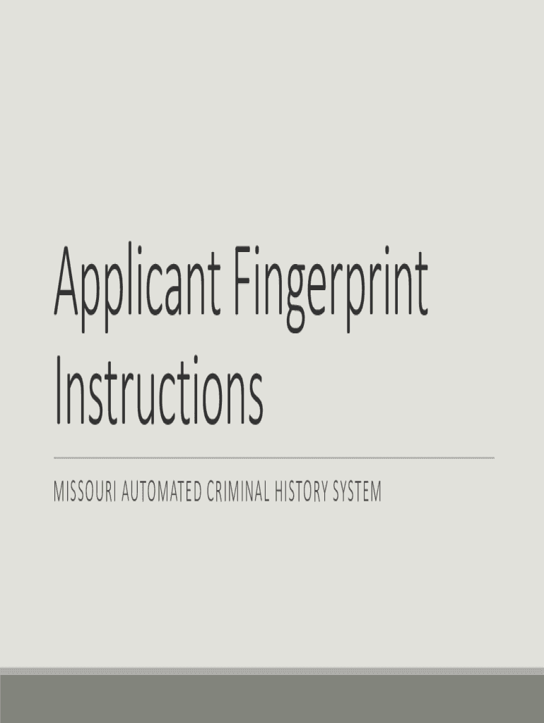 Applicant Fingerprint Instructions MISSOURI AUTOMATED CRIMINAL HISTORY SYSTEMFINGERPRINT REGISTRATION PROCESS Mach.mo.agency use only Applicant Applicants must click to proceedApplicants will enter