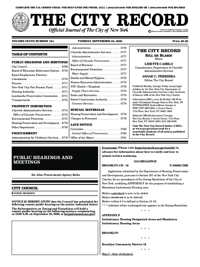 3769COMPLETE THE U.S. CENSUS TODAY. FOR HELP OVER THE PHONE, CALL 1 (844)3302020 FOR ENGLISH OR 1 (844)4682020 FOR SPANISHVOLUME CLVII NUMBER 184TUESDAY, SEPTEMBER 22, 2020, Price: $4.00Administration