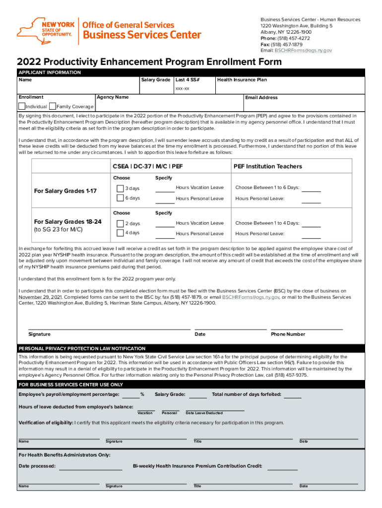 Business Services Center Human Resources 1220 Washington Ave, Building 5 Albany, NY 122261900 Phone: (518) 4574272 Fax: (518) 4571879 Email: BSCHRForms@ogs.ny.govOffice of General ServicesBusiness