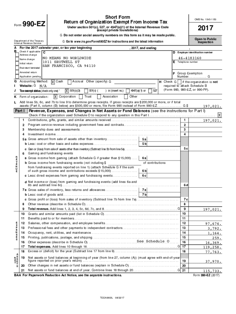 Form Short Form Return of Organization Exempt From Income Tax990EZOMB No. 154511502017Under section 501(c), 527, or 4947(a)(1) of the Internal Revenue Code (except private foundations) G Do not enter