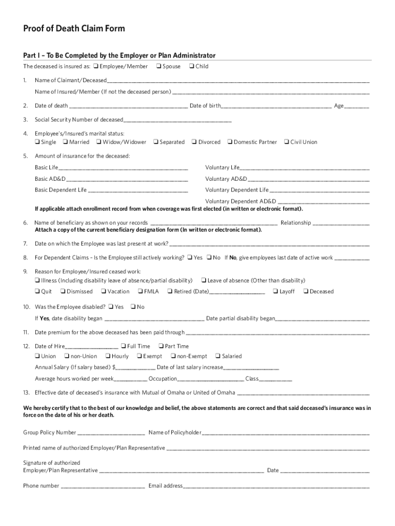 Proof of Death Claim Form This is the form your beneficiaries will complete and submit should a life insurance claim need to be filed. They can work directly with Katy Germany, kdermady@usebsg.com