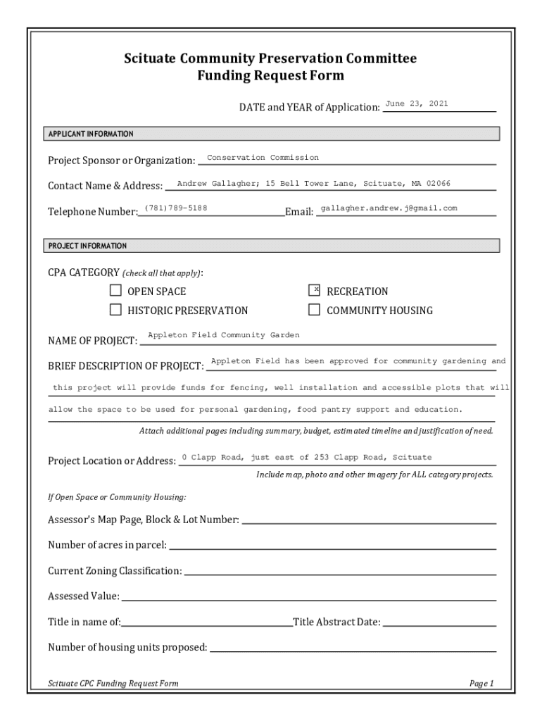 Get the free www.scituatema.gov sites gScituate Community Preservation Committee Funding Request ...