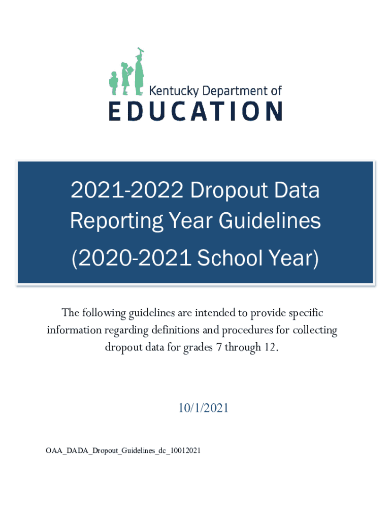 20212022 Dropout Data Reporting Year Guidelines (20202021 School Year) The following guidelines are intended to provide specific information regarding definitions and procedures for collecting dropout