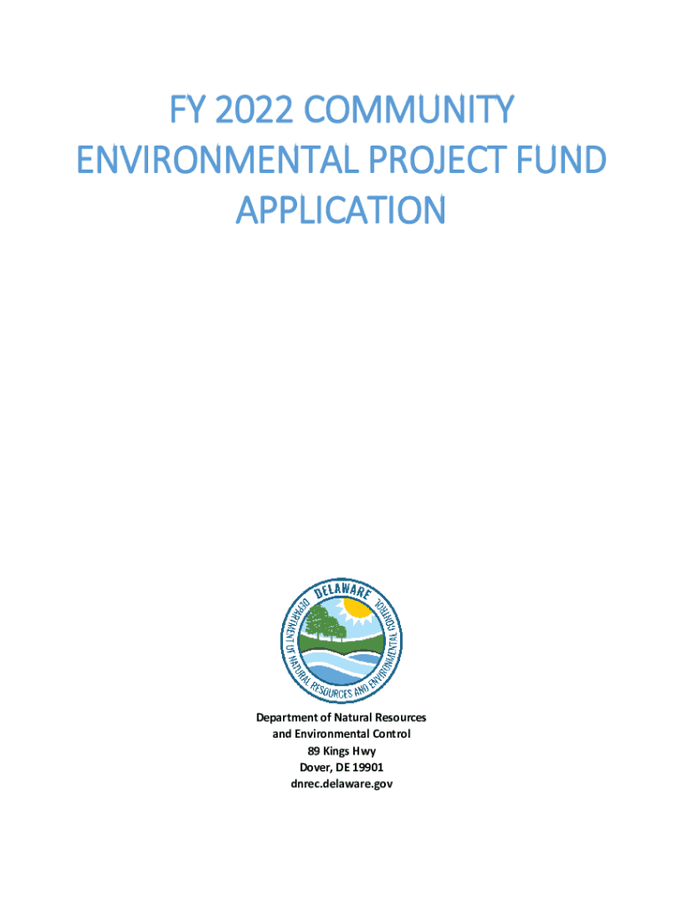 FY 2022 COMMUNITY ENVIRONMENTAL PROJECT FUND APPLICATIONDepartment of Natural Resources and Environmental Control 89 Kings Hwy Dover, DE 19901 direct. Delaware.gadabout the Community Environmental