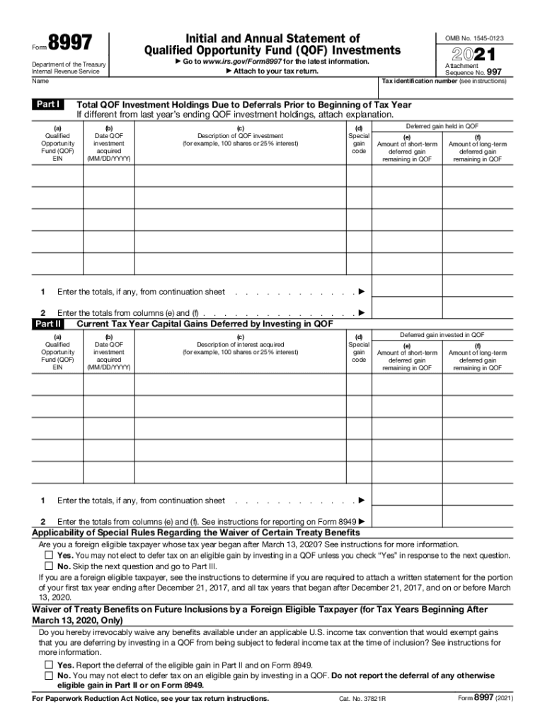 Form8997Department of the Treasury Internal Revenue Service Rampart I (a) Qualified Opportunity Fund (OF) Initial and Annual Statement of Qualified Opportunity Fund (OF) Investments Go to www.irs.gov/Form8997