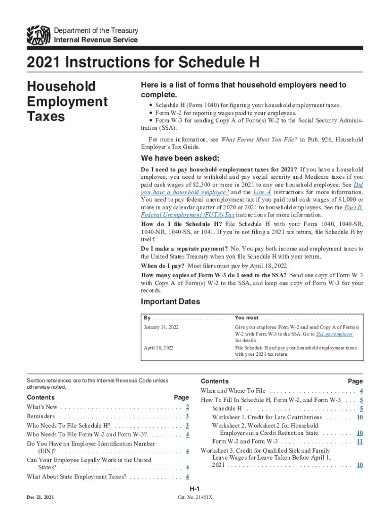 Department of the Treasury Internal Revenue Service2021 Instructions for Schedule H Household Employment Thresher is a list of forms that household employers need to complete. Schedule H (Form 1040)