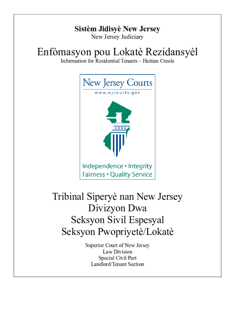 System Tidily New Jersey JudiciaryEnfmasyon POU Local Rezidansyl Information for Residential Tenants Haitian CreoleTribinal Super Nan New Jersey Division DA Season Civil Especial Season Propriety/Local