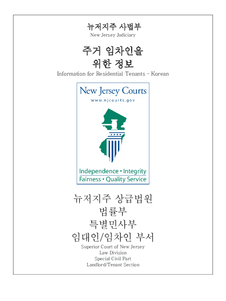 New Jersey Judiciary Information for Residential Tenants Korean / Superior Court of New Jersey Law Division Special Civil Part Landlord/Tenant Section ().