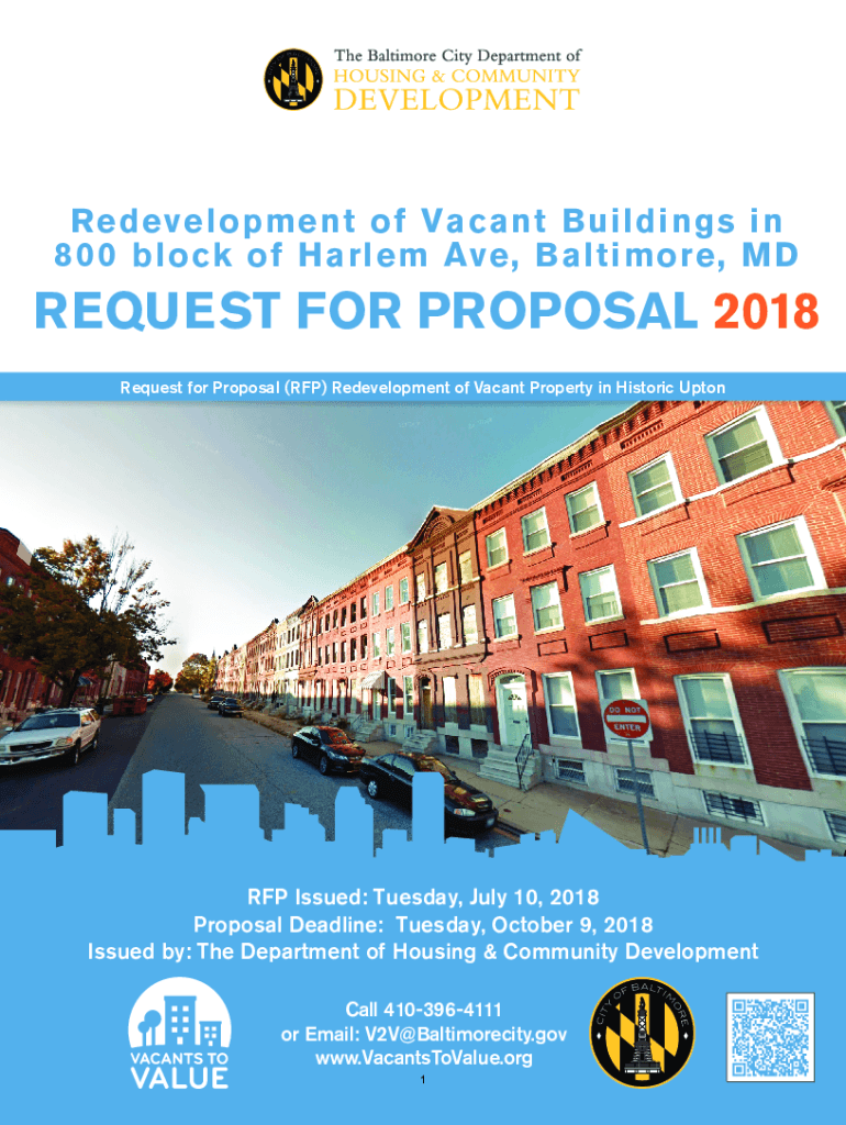 Redevelopment of Vacant Buildings in 800 block of Harlem Ave, Baltimore, REQUEST FOR PROPOSAL 2018 Request for Proposal (RFP) Redevelopment of Vacant Property in Historic Upton RFP Issued: Tuesday,