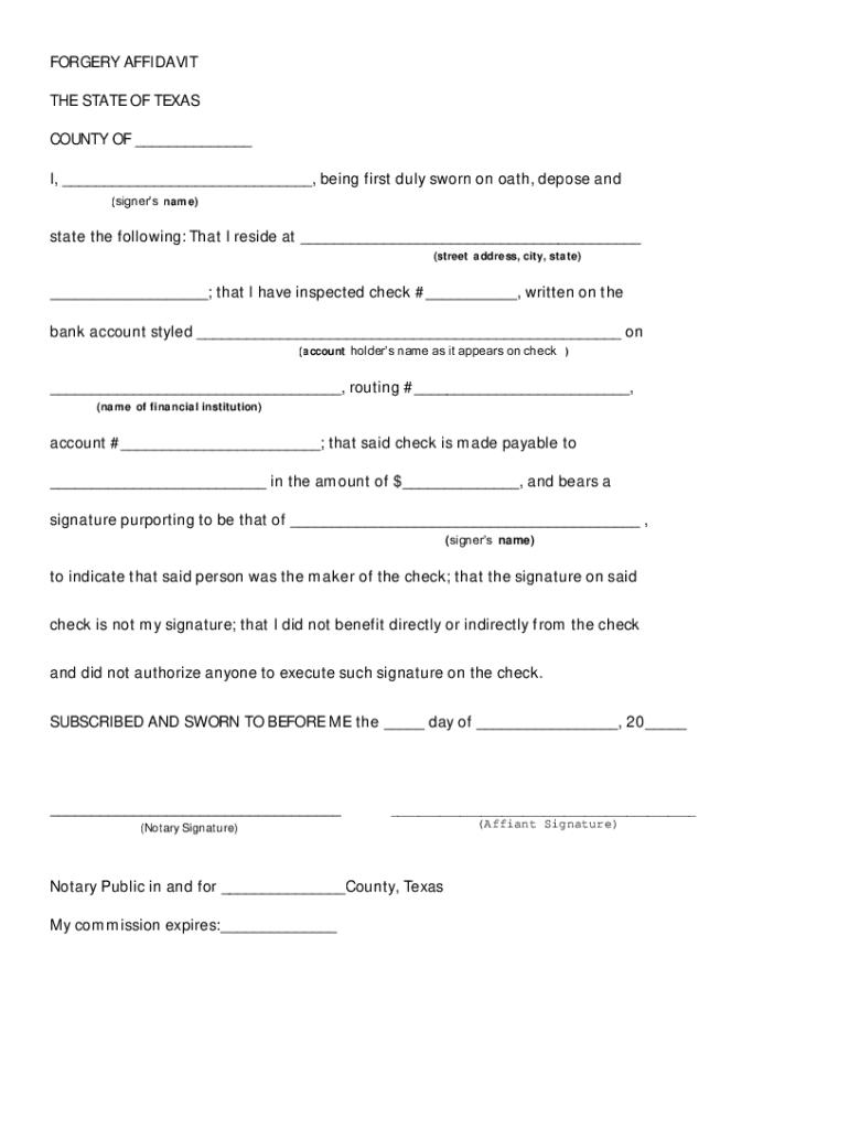Get the free FORGERY AFFIDAVIT THE STATE OF TEXAS COUNTY OF I ...