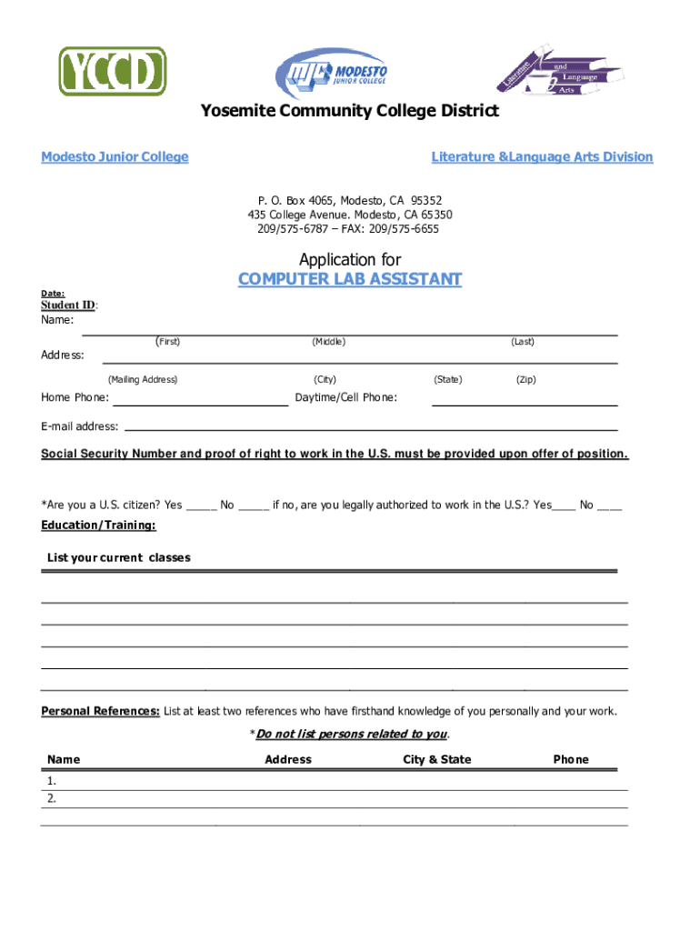 Yosemite Community College District Modesto Junior CollegeLiterature language Arts Division P. O. Box 4065, Modesto, CA 95352 435 College Avenue. Modesto, CA 65350 209/5756787 FAX: 209/5756655Application