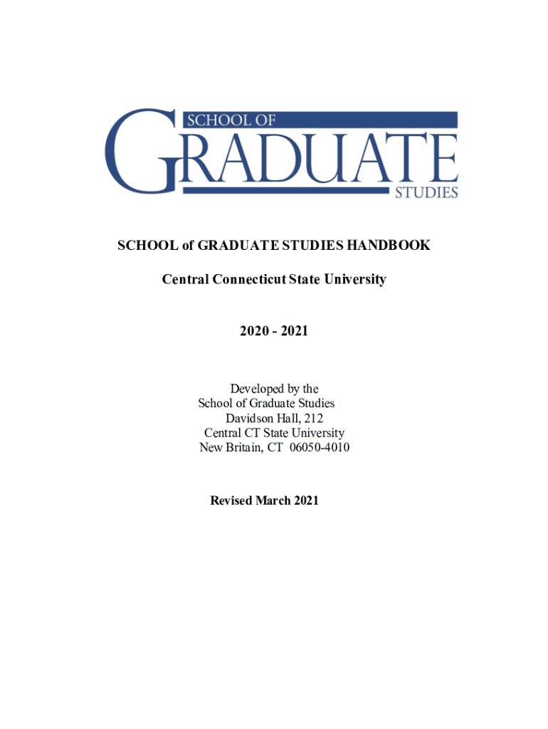 SCHOOL of GRADUATE STUDIES HANDBOOK Central Connecticut State University 2020 2021Developed by the School of Graduate Studies Davidson Hall, 212 Central CT State University New Britain, CT 060504010Revised