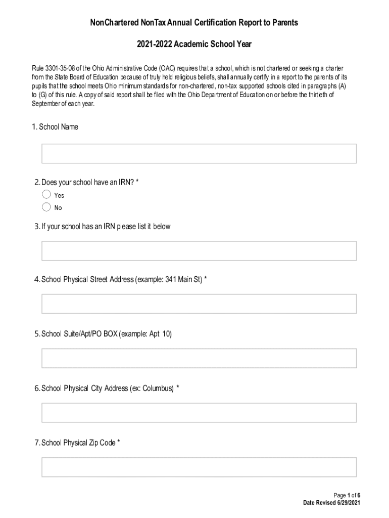 Non-chartered non-tax supported schools ohio are required to be filed by private schools in Ohio that do not receive public funding and are not chartered by the state.