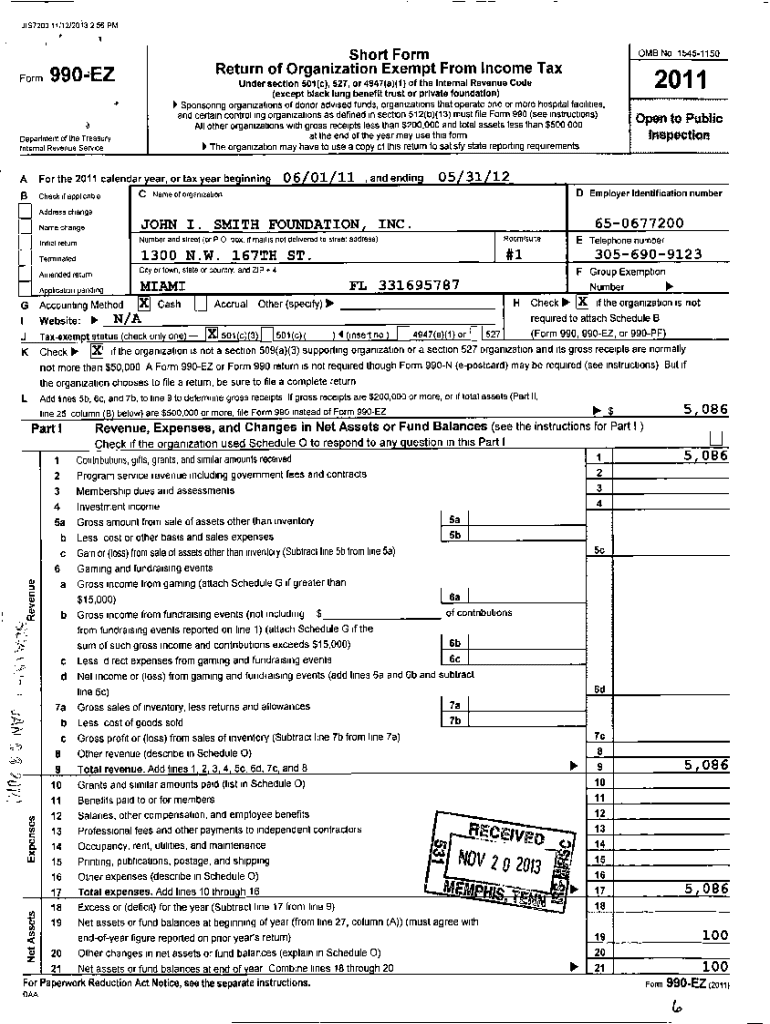 JIS7200 11/12/2013 2 56 PMFormShort Form Return of Organization Exempt From Income Tax990EZUnder section 501 (c), 527, or 4947(a)(1) of the Internal Revenue Code (except black lung benefit trust or