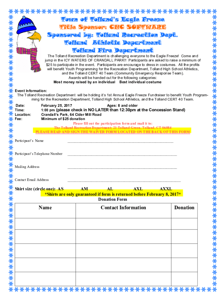 Town of Hollands Eagle Freeze Title Sponsor: CNC SOFTWARE Sponsored by: Holland Recreation Dept. Holland Athletic Department Holland Fire Department Holland Recreation Department is challenging everyone