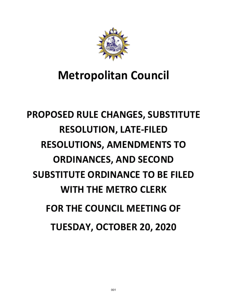 Metropolitan Council PROPOSED RULE CHANGES, SUBSTITUTE RESOLUTION, LATERALED RESOLUTIONS, AMENDMENTS TO ORDINANCES, AND SECOND SUBSTITUTE ORDINANCE TO BE FILED WITH THE METRO CLERK FOR THE COUNCIL