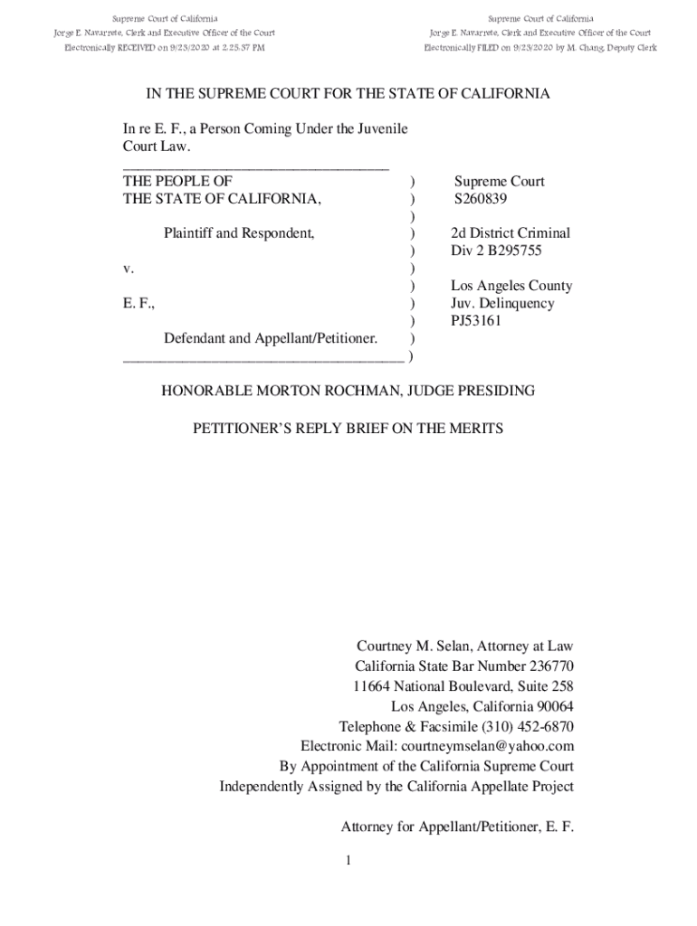 Get the free IN THE SUPREME COURT FOR THE STATE OF CALIFORNIA In re ...