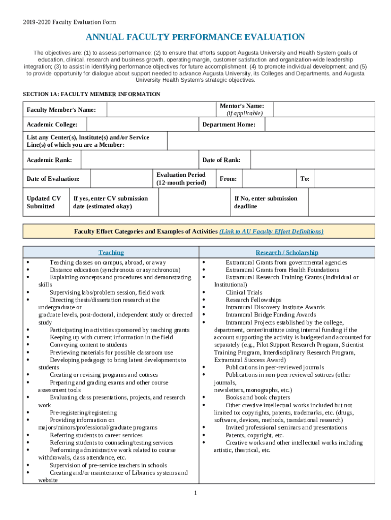 What is ANNUAL FACULTY PERANCE EVALUATION - Augusta University Form?